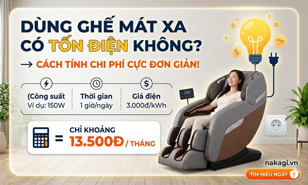 Nếu bạn đang lo lắng về hóa đơn tiền điện cuối tháng khi “tậu” một chiếc ghế massage toàn thân, bài viết này sẽ giải đáp chi tiết từ con số thực tế đến cách tính cực đơn giản giúp bạn hoàn toàn yên tâm sử dụng.